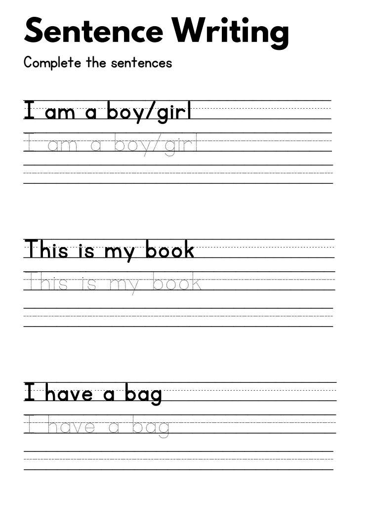 Help children build confidence in writing with this easy “My Self” themed worksheet! Perfect for beginners, it guides young learners to write simple, structured sentences about themselves.