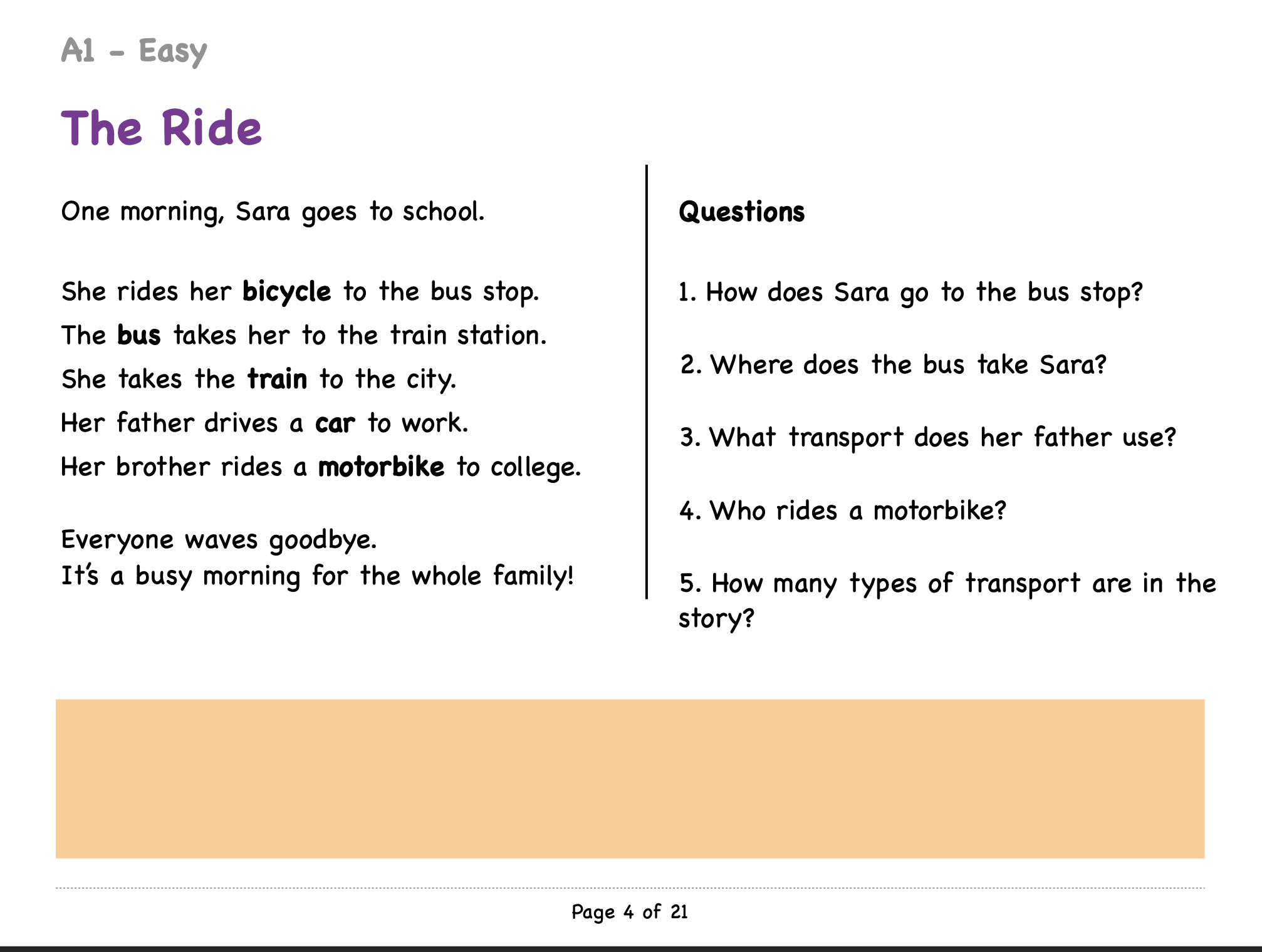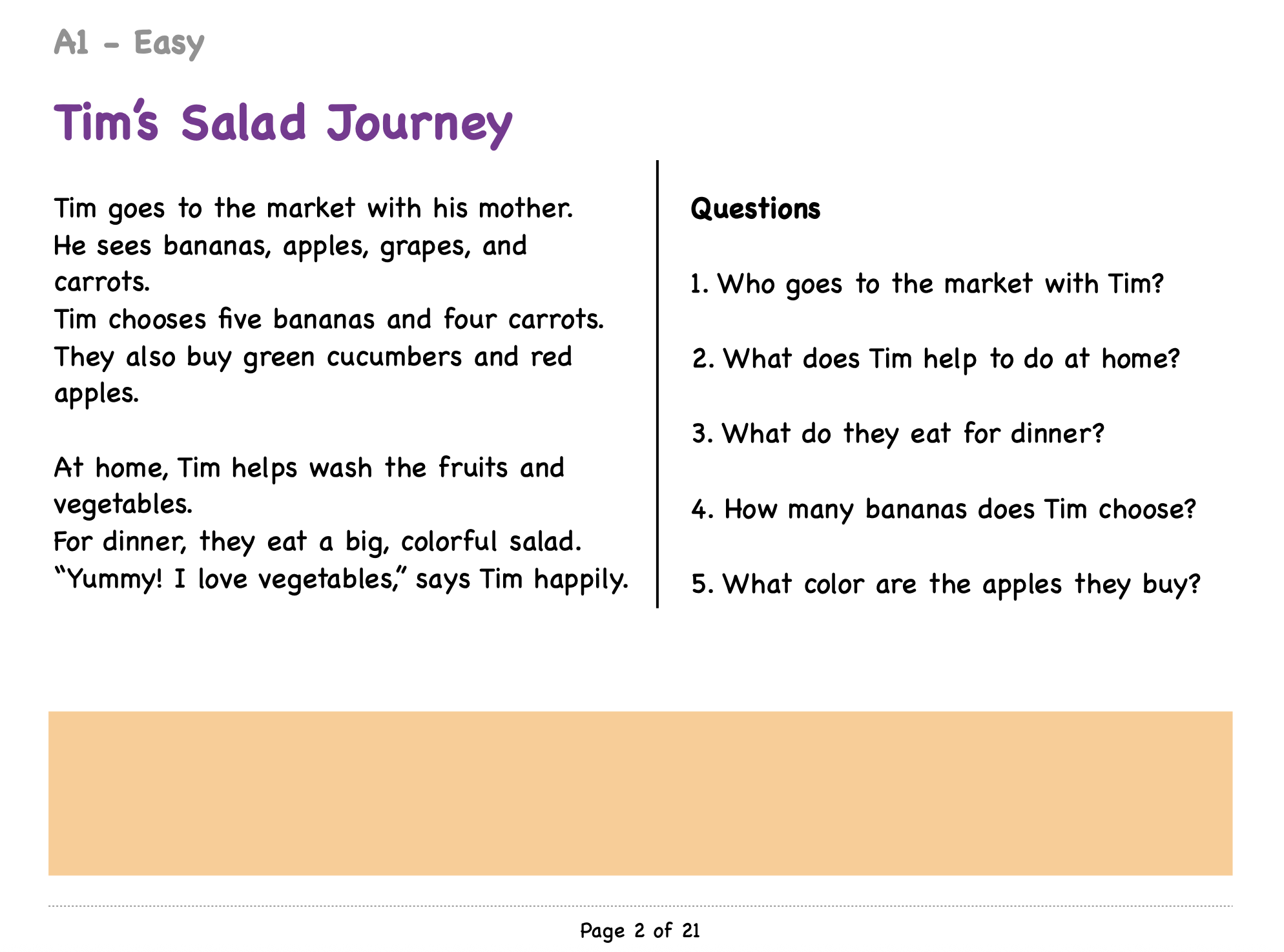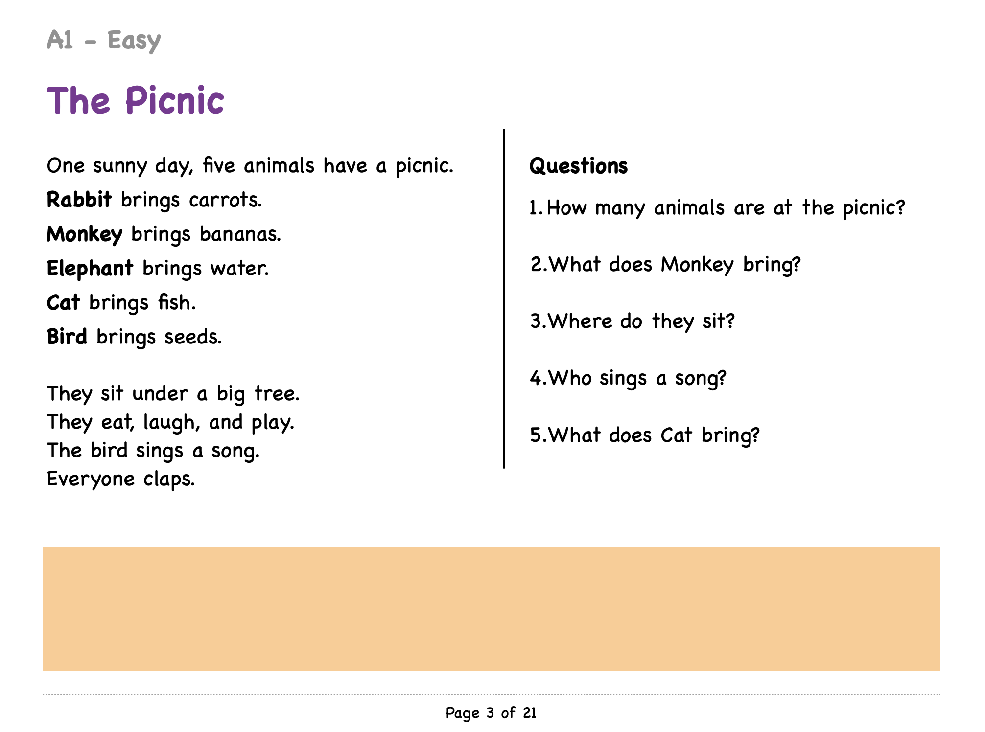 Zimm Ready is specially designed for early readers who are just beginning their journey. This level focuses on basic vocabulary, simple sentence understanding, and picture-based comprehension to build essential skills in a fun and gentle way.