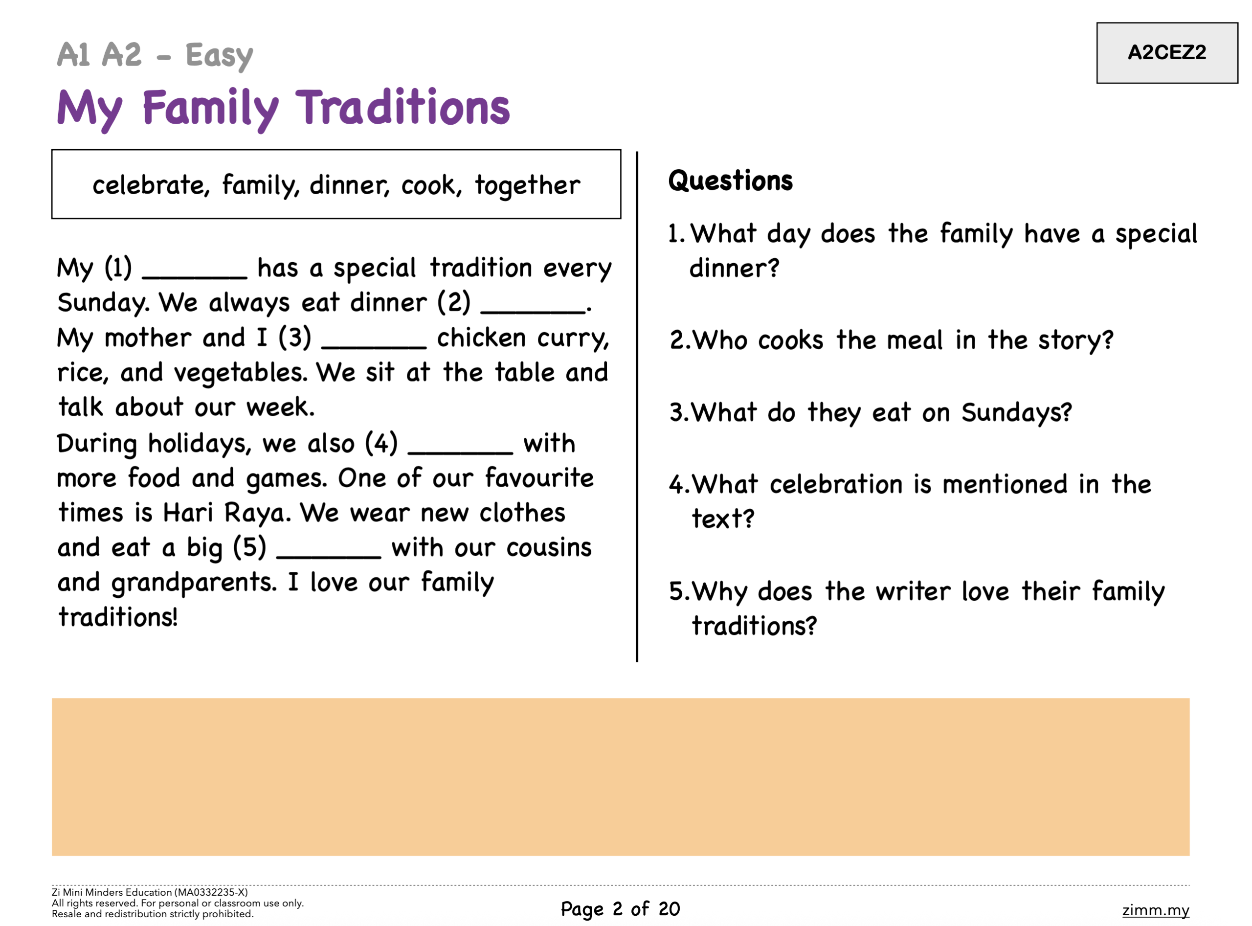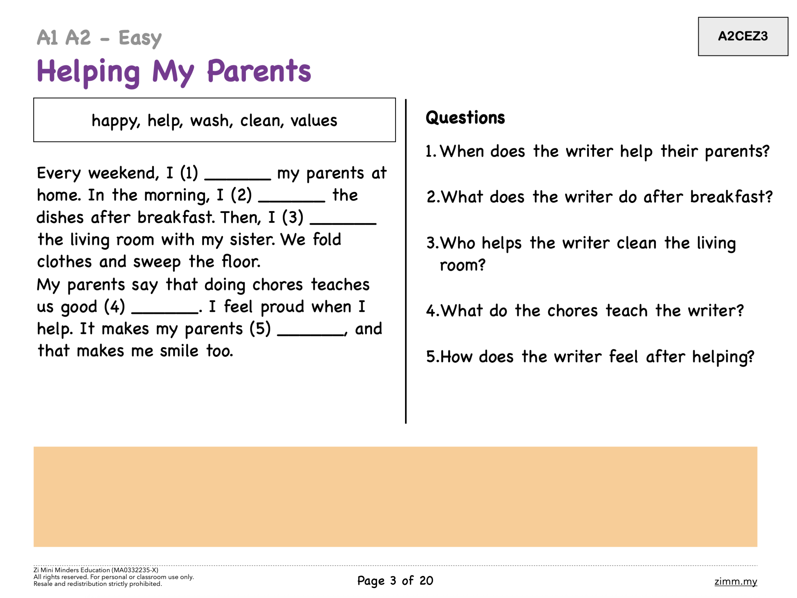 Zimm Set is designed for learners who have mastered the basics and are ready to level up their comprehension. This series builds confidence in reading short paragraphs, identifying key ideas, and answering deeper questions with logic and reasoning.