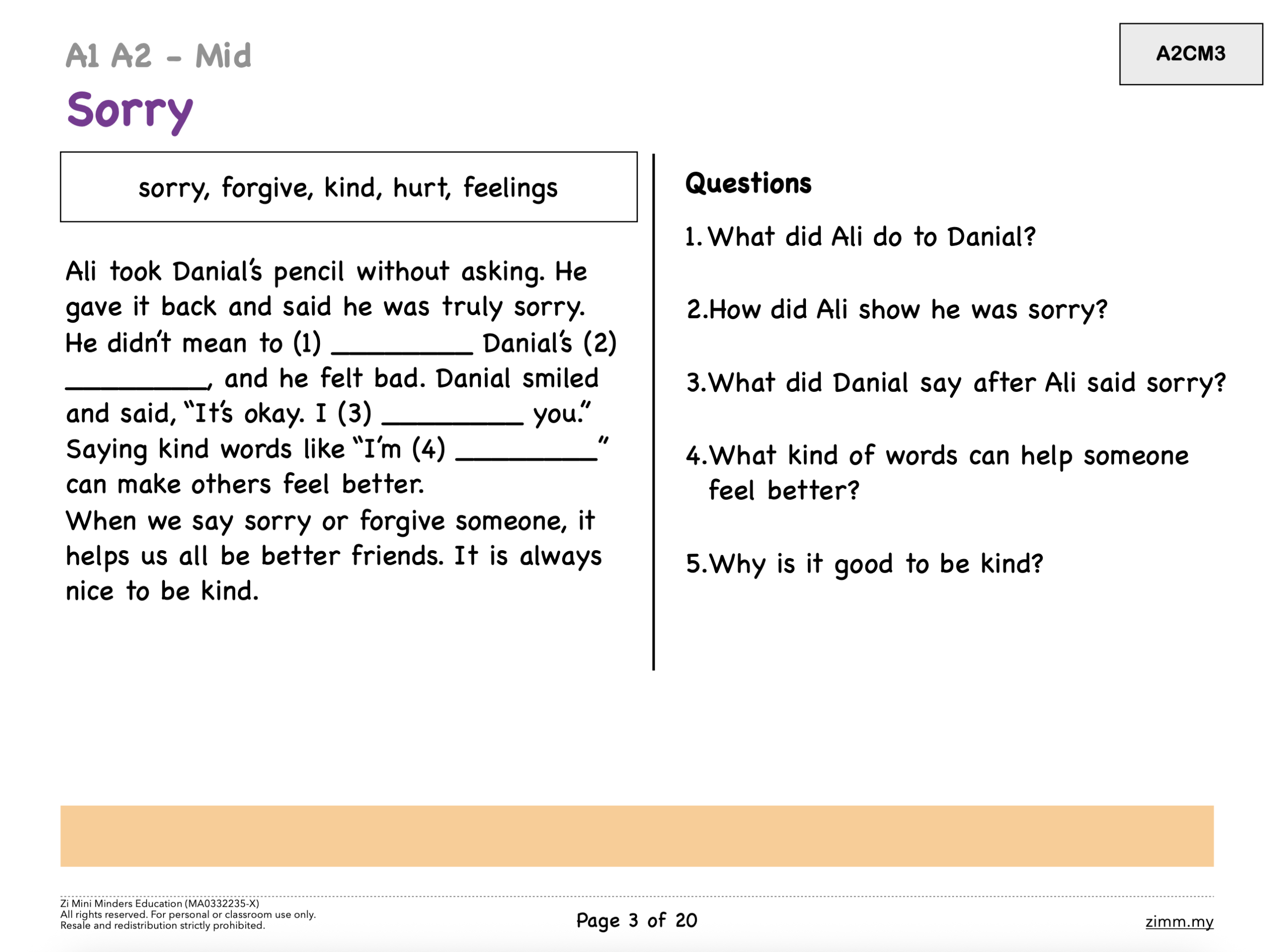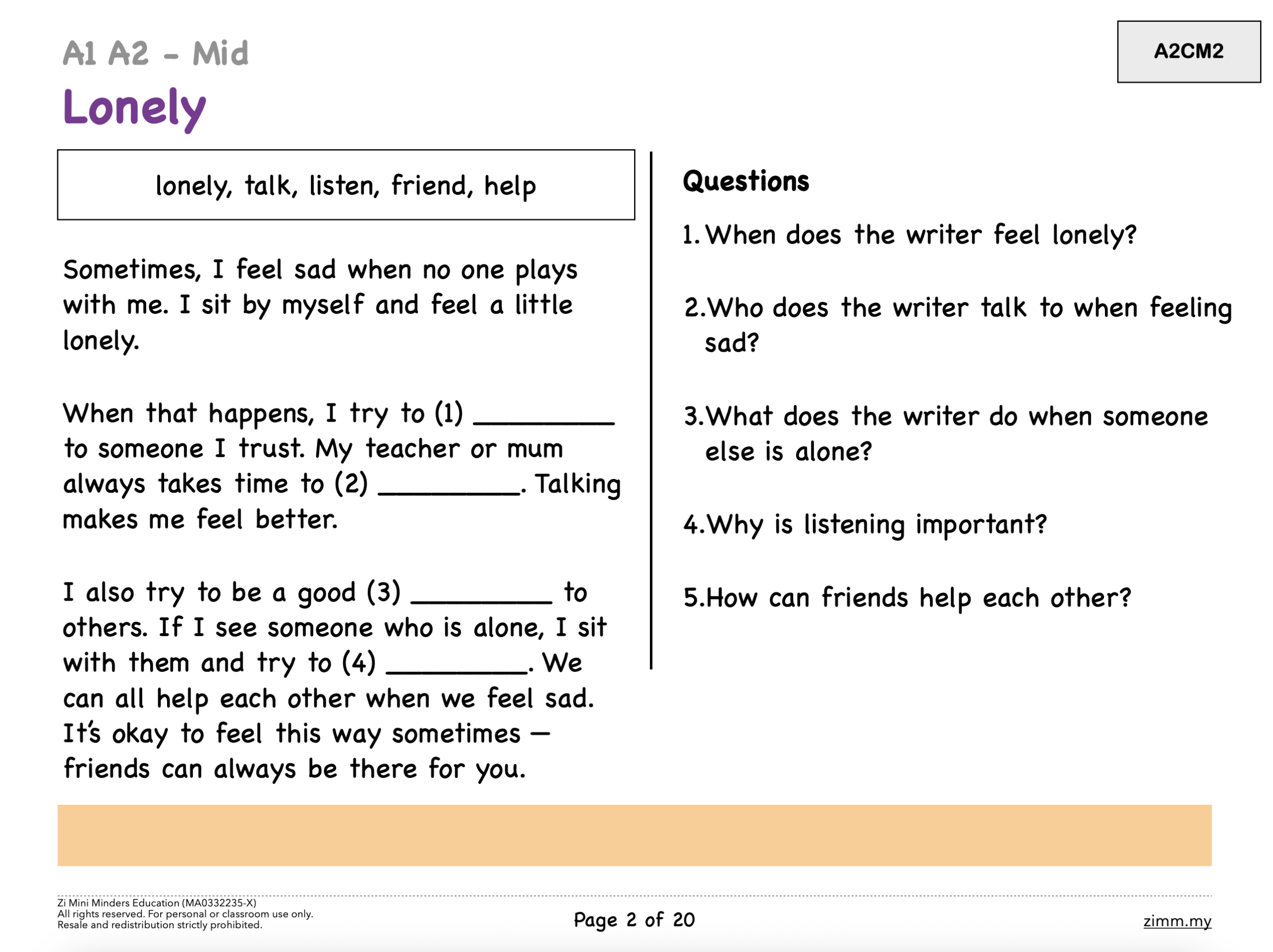 Zimm Set is designed for learners who have mastered the basics and are ready to level up their comprehension. This series builds confidence in reading short paragraphs, identifying key ideas, and answering deeper questions with logic and reasoning.